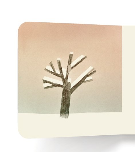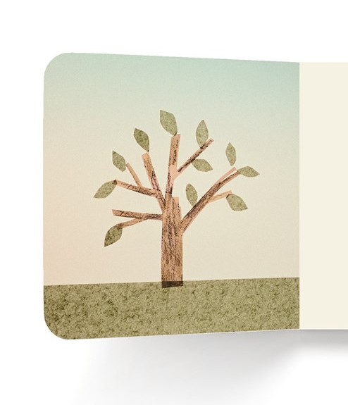 Each of these small, square, books has identical text, and pictures of the same location or object, varied according to the time of year when it is experienced. Each has a similar cover, featuring a pair of eyes ready to focus, and a color and pattern specific to winter, spring, summer, or fall. The tree is covered in snow in winter, accented with green leaves and grass in summer.