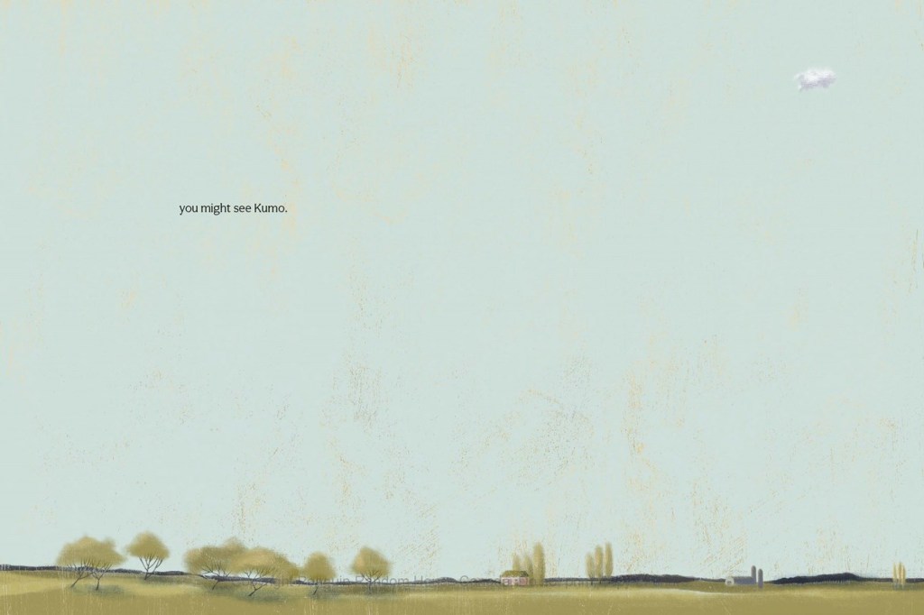 With the boy’s help, Kumo ascends to “the top of the world,” and even reaches out to new friends. With the lovely Japanese names of Fuwa-chan, Miruku, and Mochi, helpfully explained in a short glossary, they support one another, both literally and figuratively. Being alone and having friends, both meteorological and human, both turn out to be within Kumo’s flexible reach. Kumo the Bashful Cloud reveals wisdom with a light touch.