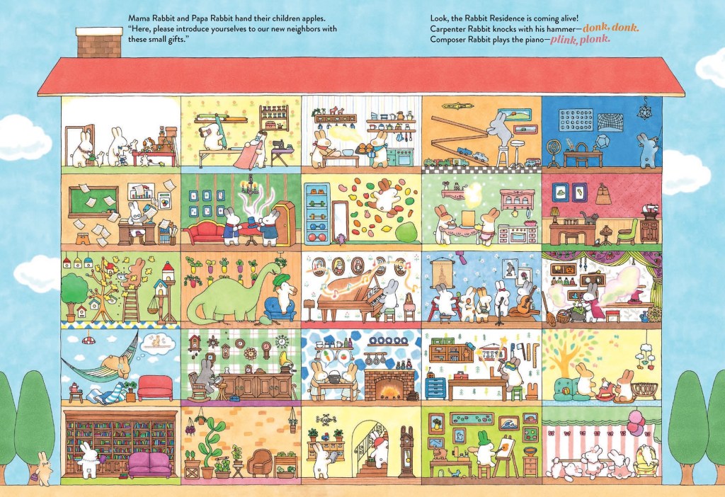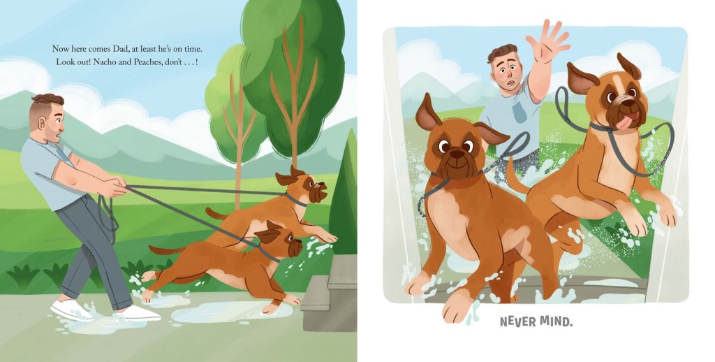 This day has to turn around or the book will end in disaster. Everyone is exhausted, but their energy kicks in enough for an impromptu dance in the kitchen as they eagerly anticipate take-out food. When the delivery driver gets lost, the work together to cook up some pasta. Maybe the meatballs were left over in the fridge. If the cheery dance seemed fun, but improbable, the dinner is a believable conclusion. There is still a sticky note on Mom’s hair, and paint on Annie’s face from her ill-fated art project, but everyone seems to have accepted the inevitability of days like this, which are “less than great.” Baths, reading time, and family togetherness are the recipe, they conclude that “makes it all work.” This cheery and unpretentious story is close enough to perfect.