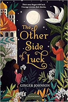 The title of this new middle-grade and older novel by Ginger Johnson is the first indication of its unusual focus. There are many books about pre-teens and teenagers struggling with the inherent unfairness of life and how to cope with it. There are other novels set in fantastic or semi-fictional historical worlds, not governed by the norms of realistic fiction. The Other Side of Luck falls into neither category, although its title might lead readers to believe that it is one more contemporary examination of young lives. Instead, we meet Una and Julien, a girl from the ruling class and a boy whose job is to help his father locate valuable plants and herbs for sale by potion makers in the local market. They do have family problems. Each has lost a mother. They both confront injustice. Yet Una and Julien’s life circumstances would seem to dictate very different outcomes. Subtlety, humor, and empathy give this novel, set in a fictional past world but full of identifiable problems, a rich and compelling dimension.