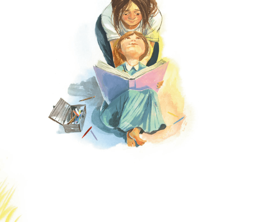 Clara is unable to speak, although the exact nature of her disability is not specified. This choice makes her character more universal, less likely to be interpreted primarily as advocacy for a particular challenge. Both the text and the pictures are realistic, but also laden with symbolism. There is no contradiction in seeing Clara as a real child, but also an example of the strengths which difference may confer. Clara “hears sounds that other children ignore,” so her intense attentiveness makes it no surprise that she emphasizes with Moon, the blind foal raised, along with other horses, on her farm.