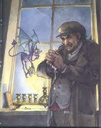Hyman’s goblins are both demonic and hilarious. Hershel is humble but dignified. The buttons on his vest are not all closed and his coat swings around as he taunts his nemesis, the pickle eater, who stamps his foot in frustration like Rumpelstiltskin. The town is poor, but strengthened by love and loyalty. Cousins to Sendak’s wild things, if somewhat more grotesque, the artist’s goblins are reptilian, with allusions to Greek mythology and classic fairy tales. Hershel’s expressive facial expressions contrast with the exaggerated ones of his opponents. Playing dreidel, Hershel looks calm, while the baffled goblin stares at his diminishing pile of coins. When Hershel finally succeeds in defeating the goblins and the fierce storm they had provoked, the peaceful town is covered in snow, as Hershel’s invincible menorah glows. Even better, “…there was no reason to worry. In every window there stood a menorah with nine gleaming candles to light the way.” It takes more than some angry goblins to spoil Hanukkah in Ostropol, when Eric Kimmel and Trina Schart Hyman are there to tell there story.