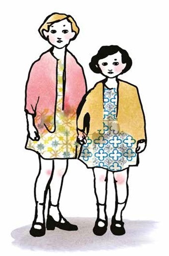 The illustrations have a tremendous impact because of Wirsén’s delicate use of watercolor and ink, as well as digital media, to express the whole range of Fried’s experiences. Her happy family is first rendered in light green and deep yellows, with Bodri a reassuringly solid dark brown. Then, dark clouds of color explode over their home. A scene of beauty in a public park is punctuated by a sign on the bench reading “Für Juden verboten. No Jews allowed.” Later, when the Nazis have been defeated, Bodri sits under a tree with deep green leaves, which turn to “copper-red autumn robes” as the season changes. The natural world has remained a constant while the world of human-caused horrors was buried in devastation. Adjacent pages show Hédi and her younger sister as inmates, and then as girls again in flowered dresses. They will never be the same as they were before the tragedy; this is not a Holocaust book that ends on a false note of hope. Fried’s simple statement of purpose, “So that it will never happen again,” is directed at the future, although it cannot change the past.