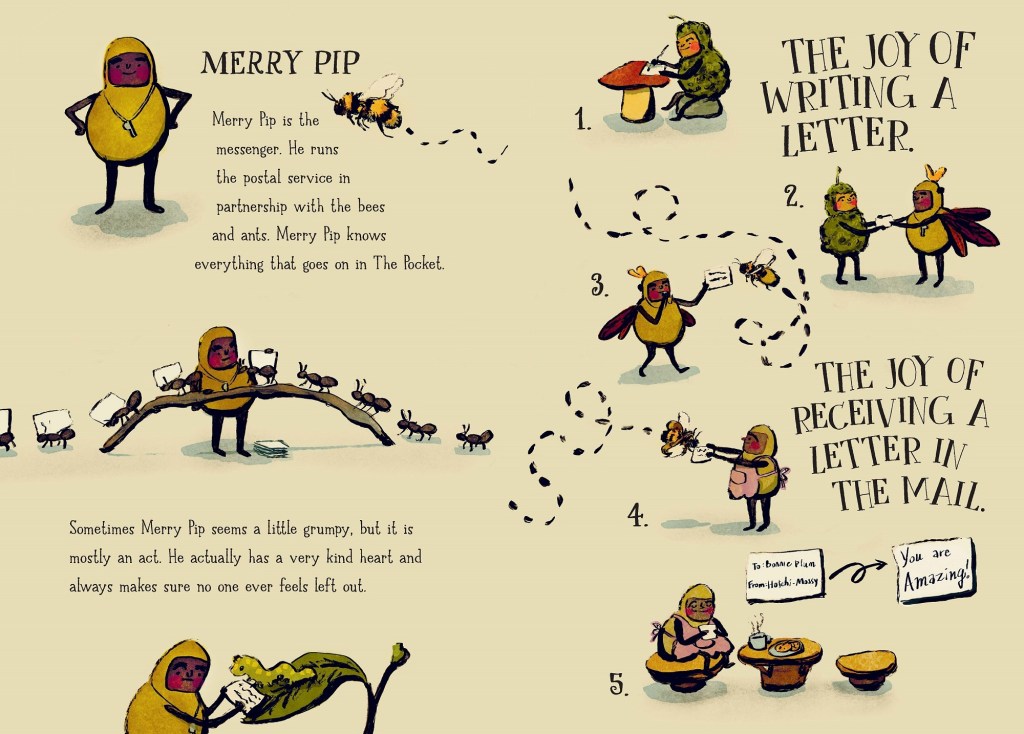 Their existence is full of many different kinds of joy: making a wish on a dandelion, writing a letter, listening to birds and laughing with friends. The types of joy that characterize their lives are either timeless (bird listening) or defiantly old-fashioned (letter writing.).