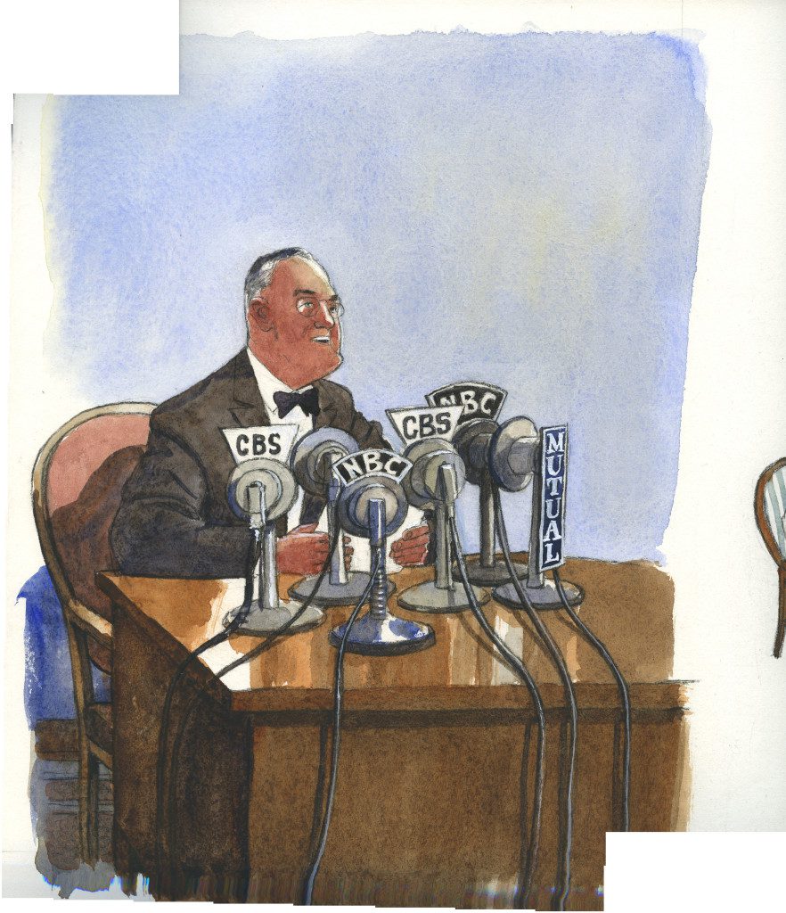Wonderful period details encourage discussion with children. Roosevelt speaks into a bank of old-fashioned microphones belonging to each radio network, while families listen to him speak over the air waves in their living room. The sense that America was a vast sea of people and that each citizen was an individual comes across through nuanced facial expressions and gestures.