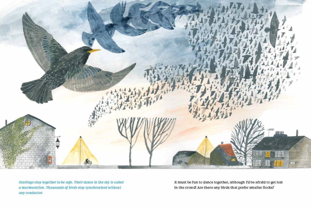 Breaking the mold may be a harsh-sounding metaphor for a children’s book about birds, which contains within itself a story of natural insecurity and a parent’s reassurance. Fly Like a Bird does actually break a mold in the “STEAM” books genre. The text and the artwork, by Olga Ptashnik, are both wonderful. Children, and adults, will also learn a lot about a wide range of birds.