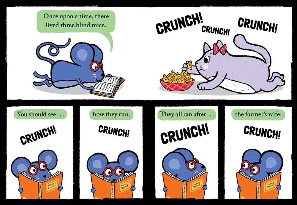 Having already listened to Mouse’s reading aloud of “Three Blind Mice,” Kat envisions something a bit more dramatic, better suited to an extrovert. Their friendship is characterized by compromise more than conflict. Winnie the Pooh and Christopher Robin, Frog and Toad, George and Martha, all have their own perspectives but still manage to get along.