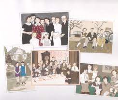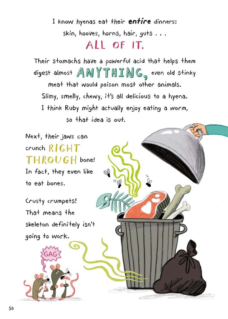 When I first opened the book, I immediately saw an homage to classic children’s book illustration, even if that homage was accidental. Roger Duvoisin’s colorful midcentury buildings, as in The House of Four Seasons, or The Happy Lion, invite a view into the past. Yet the book is far from imitative, with digital collage combining with drawings to reflect the book’s theme of simultaneous events. The text also mirrors that idea, as a group of people in front of a supercomputer pay careful attention as “…the piercing sound launches fierce tidal waves and rouses sleeping volcanoes.” Another scene invites participants from a nostalgic past childhood, including covered wagons and knights enroute to a joust, to join with rockets and jet planes to uncover the noisy mystery.