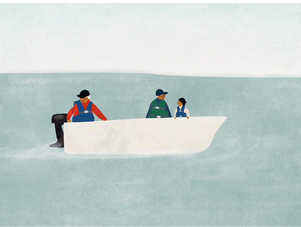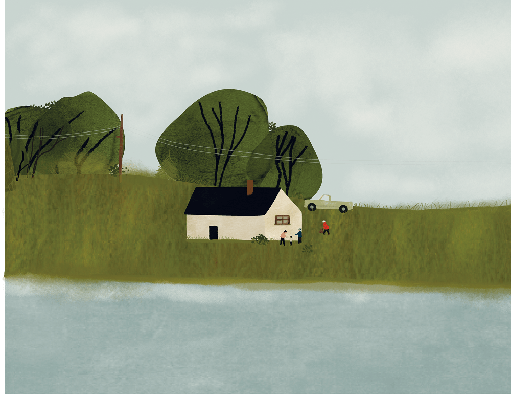 Sutton’s ink and watercolor drawings are glorious. She uses earth colors and jewel tones, includes many homely details of rural life, and allows even minor characters to claim their own personalities. One two-page spread of the Ramsey family enjoying their meal of both oatmeal with milk and cornbread with butter features each person responding somewhat differently to the fortunate occasion. The mother feeds the baby in her lap, one boy reaches for seconds while another closes his eyes as he bites into the bread. Colorful flowers decorate the table, while pots and pans on hooks and wooden shelves signal the everyday work involved in sustaining a family. The book ends with a lovely “Author’s Note” about the story’s origin, and a recipe for traditional corn bread. Ernestine is five years old and a big girl, but her adventure resonates with anyone faced with a task, motivation, and the support of a loving community.
