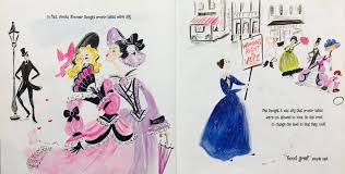The story of how Julia acquired Minette adds a poignant touch to this snapshot of one moment in the chef’s life. A cutaway picture of Julia and Paul’s apartment on the top two floors of an elegant old building shows their life together. we see them, in each room, dining, sleeping, eating, sharing coffee in front of a fire. “There was only one thing missing.” The next page reveals their adoption of Minette. Julia and Paul never had children, although their life was full in other ways. Yet the expectation raised on one page and humorously altered on the next one leaves a graceful suggestion of changed expectations in this charming book.