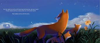 Now the boy is devastated. Worse, the book is actually one of his father’s favorites, adding a dimension of anxiety to an already tense situation. Arai traces the arc of the boy’s feelings. They boy had wanted to share the book with his friend, not only because they both liked butterflies, but in order to communicate its special status in his family. Worried, he leaves the house and begins to ski through the snow. Suddenly, he finds himself looking into a miniature theatrical production. There are “snow people,” including ballerinas. They surround him physically, occupying his senses. Then the scale seems to change, as he sees “a large theater in front of him.” Yet the performers, who include singers, still appear to be tiny. “Everybody floated quietly to their places, like freshly fallen snow.” There are echoes of Tchaikovsky’s Nutcracker, with impressionistic colors. Snow people reflect the color of rainbows. Icicles are suspended from their limbs and odd pieces of scenery, like an Easter Island head, occupy the elaborate background.